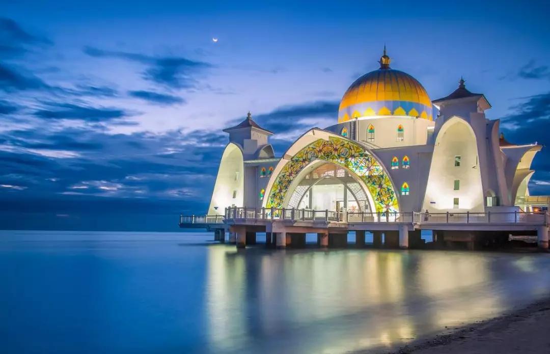 位于世界遺產(chǎn)老城馬六甲的海峽清真寺就像是個(gè)美麗的少女,白天在陽光下展現(xiàn)著清新的活力,傍晚隨著夕陽西下再越來越厚的夜色中釋放迷人的魅力。特別是日落以后,清真寺亮起彩燈,呈現(xiàn)出莊嚴(yán)卻又色彩斑斕的宗教氛圍。隨著海浪的起伏,整個(gè)清真寺就像漂浮在海面上一樣,好似一艘船,蕩漾在馬六甲海峽的中央。
