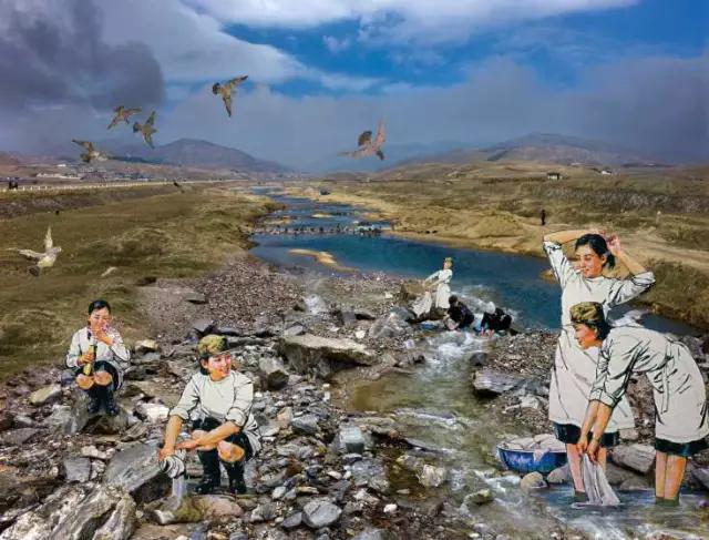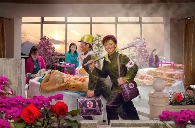 簡而言之,她把自己拍攝的現(xiàn)實影像與宣傳畫中的朝鮮拼貼在一起,帶來了觀看這個神秘國度的全新視角。在這些作品中,戲劇化的沖突與超現(xiàn)實的景象被巧妙重組,令人錯亂的同時也讓人驚醒:發(fā)生在朝鮮的一切不正是如此嗎?