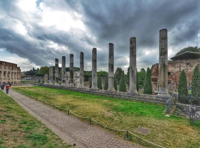 今天的帕拉蒂尼山上,遍布著體積龐大的地基,這些建筑雖然僅剩下被歲月蠶食的裸石骨架,卻依然氣勢恢宏。