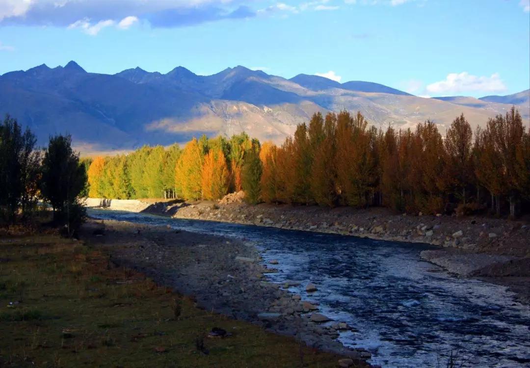 新都橋鎮(zhèn),又叫東俄羅,新都橋海拔約3300米,沿線有10余公里被稱為“攝影家走廊”,沿著川藏公路南線前行,只見一個個典型的藏族村落依山傍水地散布在公路兩旁,一條淺淺的小河與公路相依相偎地蜿蜒流淌,房前路旁屹立著一顆顆挺拔的白楊,在微風(fēng)中輕輕搖曳,陽光斑駁的灑落在地上,還可遠(yuǎn)觀蜀山之王—“貢嘎山”這就是新都橋,一個如詩如畫的世外桃源。令人神往的“光與影的世界”、“攝影家的天堂”。