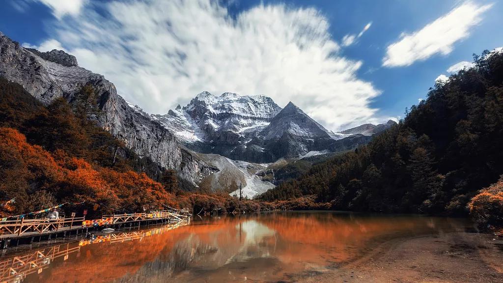 乘觀光車到達(dá)龍同壩,景區(qū)以仙乃日(6032,藏語觀世音菩薩)、央邁勇(5958,藏語文殊菩薩)、夏諾多吉(5958,藏語金剛手菩薩)三座雪峰為核心區(qū),北南向分布,三座雪山呈品字形,三峰藏名為“念青貢嘎日松貢布”,意為“三怙主雪山”,是眾生朝圣積德之所在地,徒步抵達(dá)沖古寺(藏語意為填湖造寺,海拔3900米),由草地、森林、小溪和嘛呢堆組成的天然沖古草坪,使你真正感覺到大自然的雄壯、美麗、神奇和嫵媚;