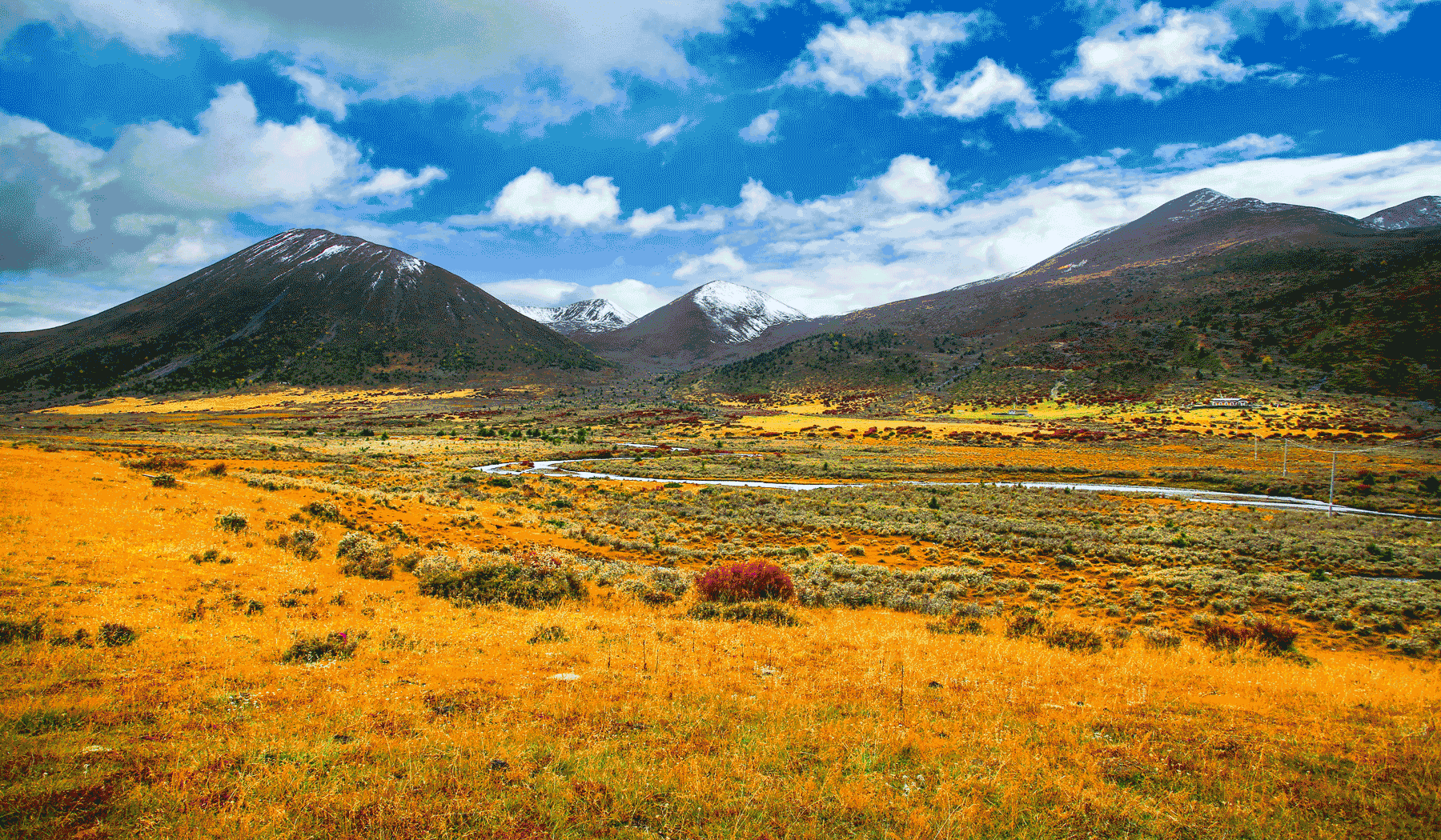 這里高山陡峭,山上生長著參天的樹木,群山的顏色隨著四季變換著,白雪下裸露出的黑色巖石訴說這千年藏地的蒼涼;