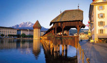 黃昏時在此漫步,仍可領略盧塞恩的一股浪漫的中古情懷,現(xiàn)今卡佩爾廊橋仍是盧塞恩明信片上不可缺少的景物,及獨具特色的【八角水塔】(瀏覽時間不少于10分鐘),這都是琉森的地標性建筑,也是瑞士上鏡次數(shù)很多的文化遺跡,之后乘車前往酒店休息。