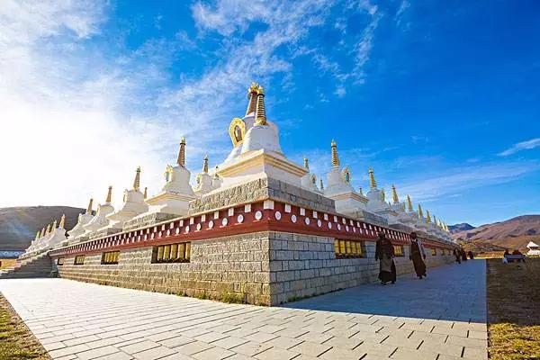 11:00 前往稻城白塔(20分鐘),它又叫尊勝塔林,是稻城的門戶, 由一個主塔和119個小塔組成,每天也都有人來轉經,尊勝塔林的108個小塔內放置的是釋迦牟尼佛祖,主塔內放置的是尊勝佛母,尊勝佛母,音:“朗覺瑪”,乃長壽三尊之一,主長壽,因為塔全身潔白,所以取名為白塔,站在塔頂,便可俯瞰整個稻城縣城。稻城的白塔是康南地區唯一的一個公園,以藏族同胞心中至高無上的白塔為主題,在全世界是絕無僅有的;
