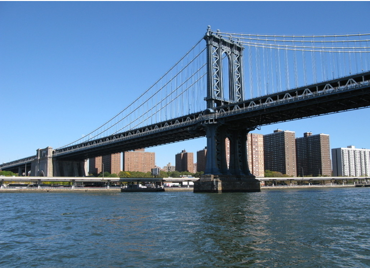 如今在曼哈頓島和布魯克林區之間,有一座跨越東河的懸索大橋,叫布魯克林橋。布魯克林橋建成于1883年,外觀富麗典雅,高塔和鐵索都是畫家們競向描繪的對象。這座橋與帝國大廈和昔日的世貿中心雙子塔樓一道,一直是紐約的標志性建筑,而工程師羅伯林一家兩代三口人的傳奇故事,更是給大橋增添了華美的光彩。