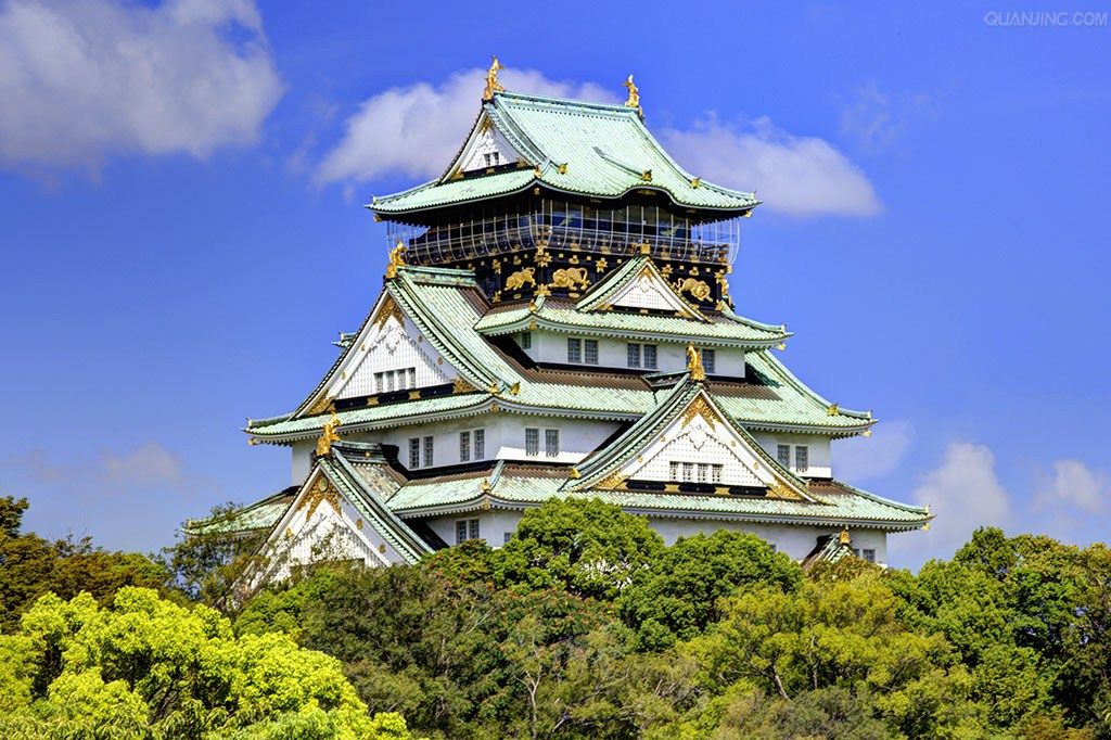 現存的大阪城為1931年由民間集資重建,外觀5層,內部8層,高54.8米,7層以下為資料館,8層為瞭望臺。城墻四周建有護城河,附近有風景秀麗大阪城是大阪最著名的旅游觀光景點,它以天守閣為中心,位于大阪市的中央區,是大阪的象征性景點,也是游客們在大阪旅游的必到之地,版權所有山東聊城聊之旅國際旅行社有限公司,大阪城的庭園和亭臺樓閣。漫步河邊,奇花異卉,滿目青翠,充滿詩情畫意。城內櫻花門頗為著名,當年大阪城遭遇火災,僅這一道全部用巨石砌成的櫻花門屹立無恙,成為僅存的遺跡。大阪城內城中央聳立著大阪城的主體建筑天守閣,巍峨宏偉,鑲銅鍍金,十分壯觀。內部保存有豐臣秀吉的木像、使用過的武器及繪畫等。從天守閣頂層可俯瞰大阪周圍的美景。如今大阪城已被定為特別史跡。