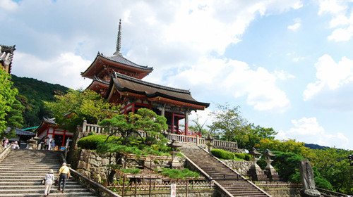 清水寺位于京都東部音羽山的山腰,始建于778年,是京都最古老的寺院,曾數(shù)次被燒毀并重建,后于1994年被列入世界文化遺產(chǎn)名錄。本堂前懸空的清水舞臺(tái)是日本國(guó)寶級(jí)文物,四周綠樹(shù)環(huán)抱,春季時(shí)櫻花爛漫,是京都的賞櫻名所之一,秋季時(shí)紅楓颯爽,又是賞楓勝地。清水寺的茶藝名列京都之首。