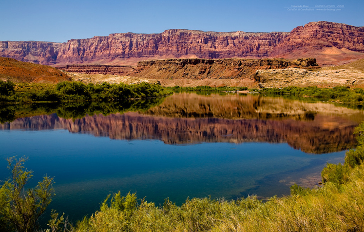 1935年建成的胡佛高壩形成的水庫,稱米德湖(MEAD),在大峽谷西端。1963年建成的GLENCANYON大壩形成POWELL湖,成為大峽谷東邊新的一處景點。這一東一西兩大壩之間,囊括大峽谷最精彩的主體。
