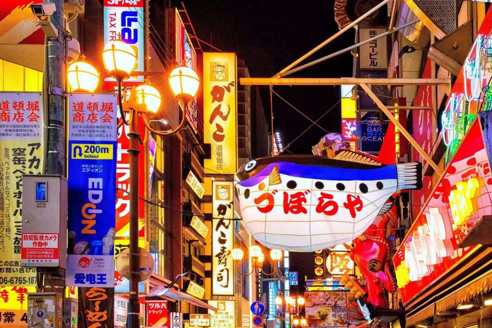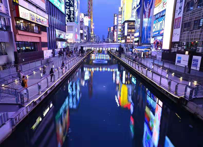 道頓堀是沿著道頓堀川南岸的一大繁華街區。日本人常說“吃在大阪”,可見這里的飲食店之多,還有成片的娛樂設施,是最受大阪市民歡迎的地方。這里有不少電影院,還有上演木偶戲的“文樂座”和表演大眾曲藝──“寄席”等傳統藝術的劇場。道頓堀作為大阪的代表地區常常在國內外的電影中亮相。在護城河兩岸布置了許多花壇和噴泉,版權所有山東聊城聊之旅國際旅行社有限公司,轉載必究!建立起一個很好的市區自然環境,使觀光客和市民樂于光顧這里。道頓堀川的兩岸的室外廣告和霓虹燈連成了一片,有些建筑物的整個墻面被五光十色的霓虹廣告裝點。每到夜晚,燈光裝飾的招牌、霓虹燈光和道頓堀川水面上的反射光交相輝映,把城市點綴得更加華麗漂亮。