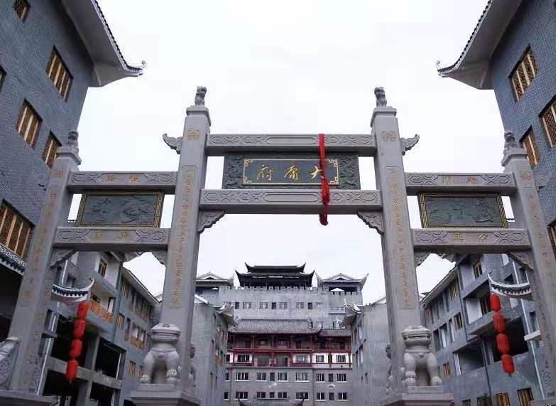 大庸府城整個府城從南至北呈階梯狀拾級而上,府城中心為中央景區,從南門至中央景區依次有朝天樓、天街、“大庸府城”石碑、虎溪、虎乳銅雕、府城牌坊、大庸衛(府)軼官名錄、照壁、府城門、虎錞香爐、府衙門、朝陽樓等十二大人文景點,均依古城舊制或傳說而建,版權所有山東聊城聊之旅國際旅行社有限公司,轉載必究!分別承載不同的文化內涵。游走府城,您既可以看到土家吊腳樓的古樸大氣,苗寨的神奇秀美,侗族風雨橋的浪漫多姿,瑤族盤王殿的神秘威嚴,還可以看到白族的三坊一照壁的清幽絢麗。檐角飛揚的馬頭墻,精致秀美的雕花門窗,藝術而靈動的銜接古往今來,將民間淳樸又細膩的藝術風格發揮到極致。