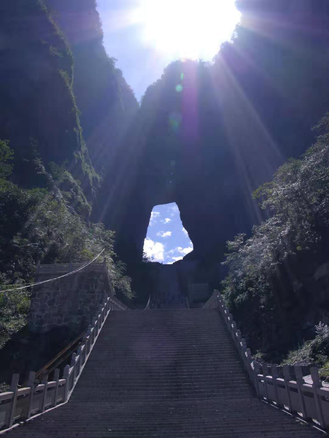 據說,天門洞開景區的有上天梯。有著九百九十九級臺階的上天梯!
