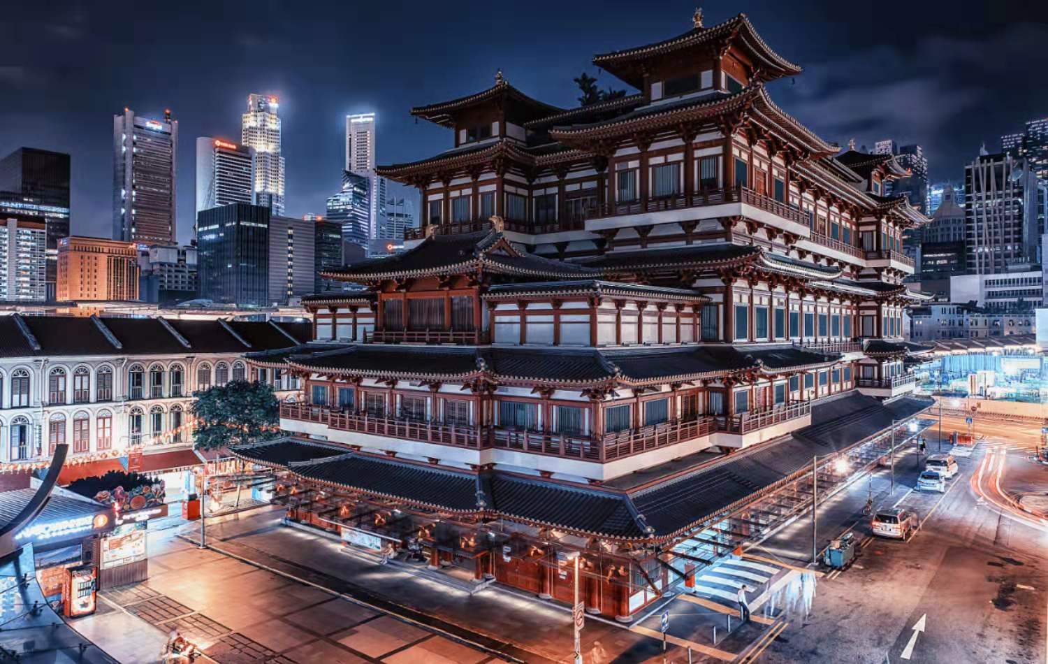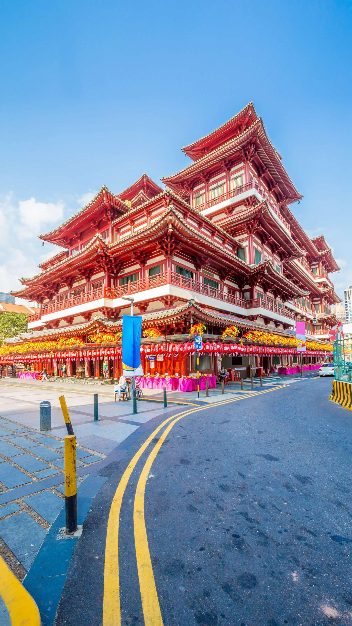 這組建筑群中最重要的是存放佛祖釋迦牟尼牙骨的佛殿。佛牙寺緊鄰王宮,建在一長方形花崗石基上。寺為二層,奶白色的墻體,紅瓦大檐頂,雖然說不上高大雄偉,卻也莊嚴肅穆。