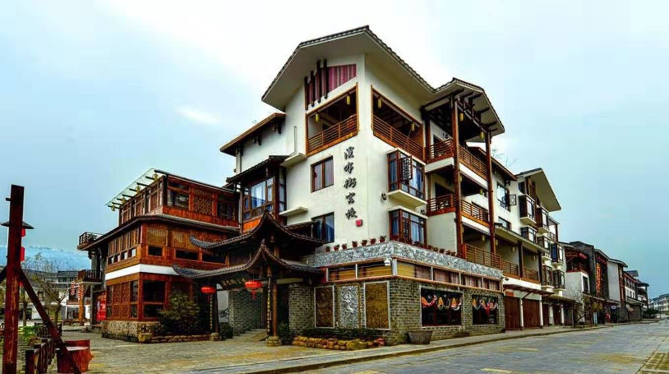 休閑客棧:客棧位于靠武陵大道,以土家族吊腳樓形式建造,每一棟客棧都帶有庭院,高4層,客棧總面積約為9000平米,面積區(qū)間800—1200平米,客棧房間設(shè)計(jì)方正,采光好,客棧內(nèi)配套設(shè)施全,如布草間,廚房、餐廳等。