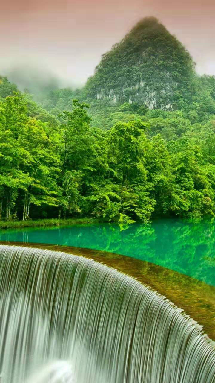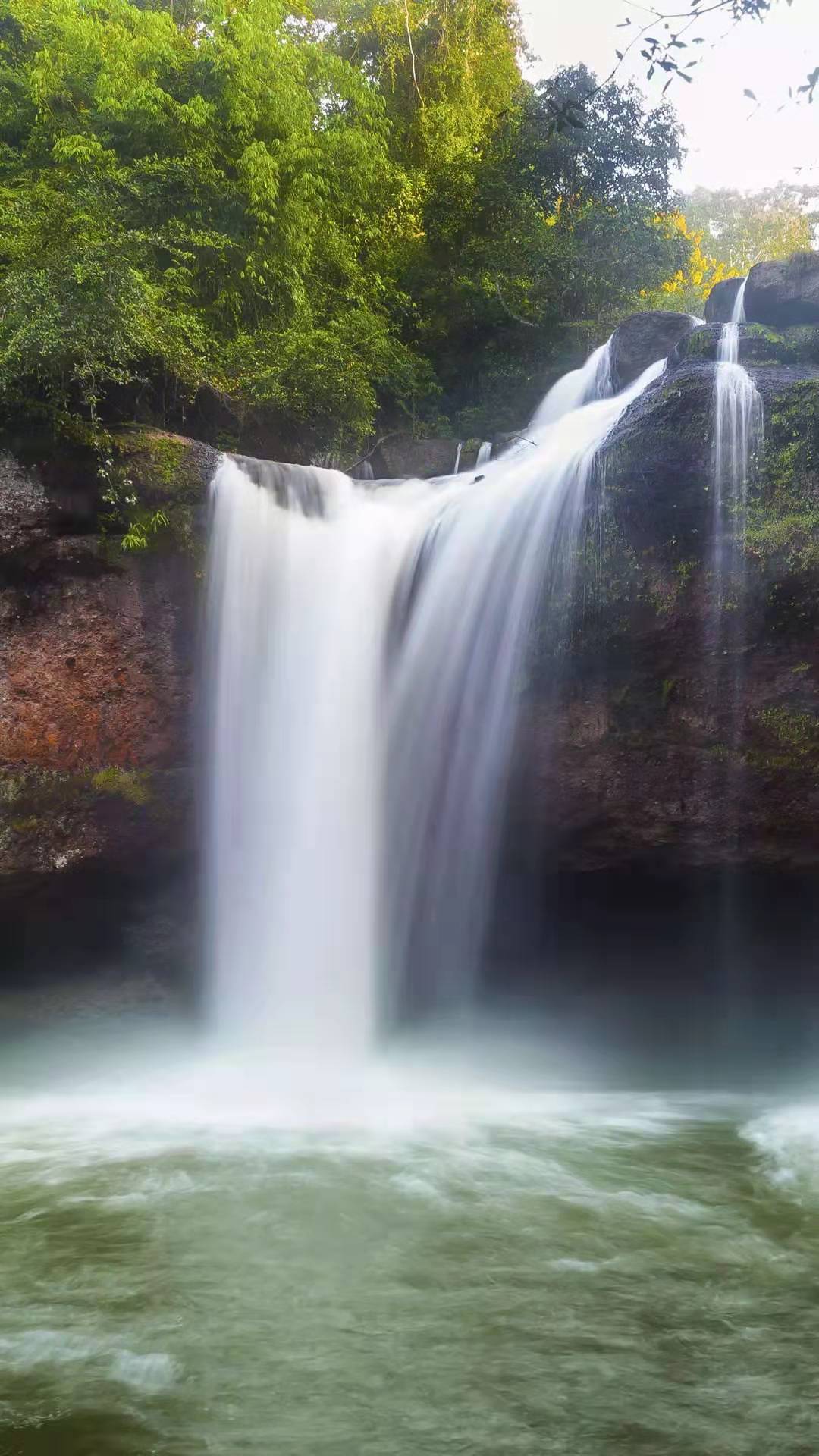 瀑布下方水潭極深,水汽長年彌漫不散,一經陽光折射,一道清麗的彩虹跨其上,故又有“彩虹淵”的美名。下游巨石紛立,是崖