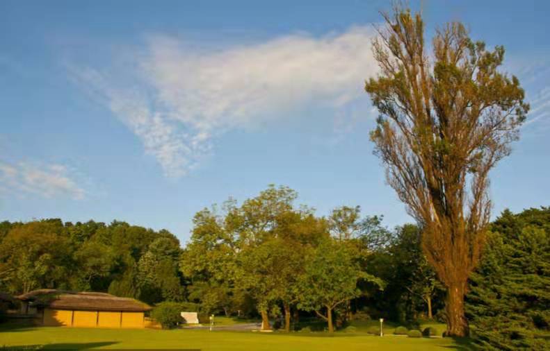 萬景臺上茅草屋旁邊挺立著白楊樹,這是金亨稷先生和他的兩個兄弟在他還是一個在平壤上學的中學生時種的樹。