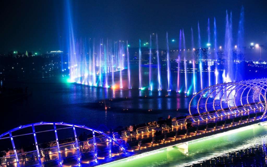 長沙梅溪湖音樂噴泉是國內(nèi)大型音樂噴泉之一,同時,長沙梅溪湖音樂噴泉也是亞洲最長音樂噴泉。2013年2月長沙梅溪湖音樂噴泉開始投入使用。梅溪湖音樂噴泉位于梅溪湖國際新城節(jié)慶島與文化藝術(shù)中心之間的水面上,金茂府正對面,長460米,高30米,通過一條弧線貫穿4個圓形組團,共采用200個三維噴頭、4個大型激光、1000盞LED燈。