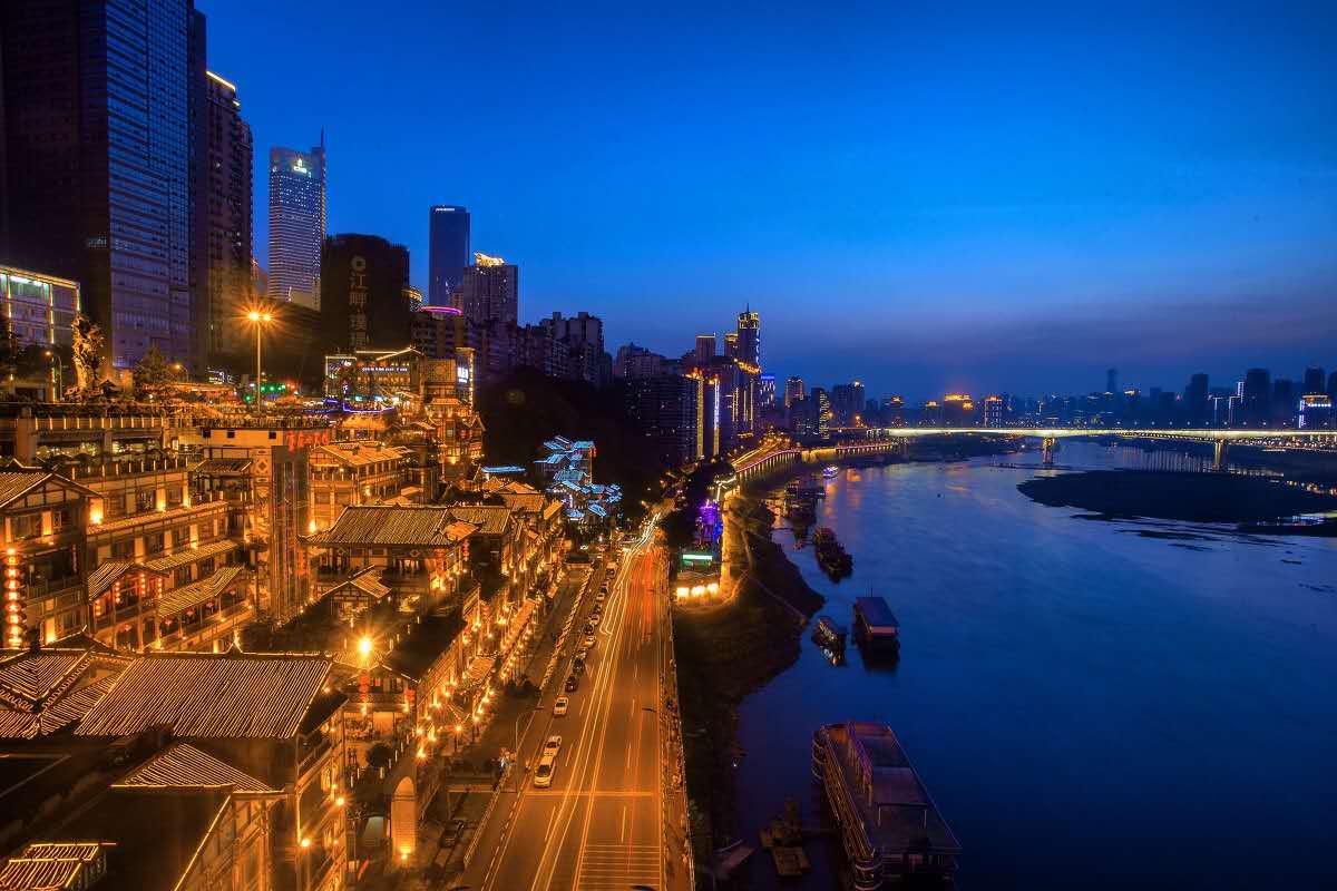 洪崖洞位于重慶市渝中區(qū)嘉陵江濱江路,北臨解放碑滄白路,南接江濱路,洪崖洞沿嘉陵江全長約1.2里,建筑面積4.6萬平方米。