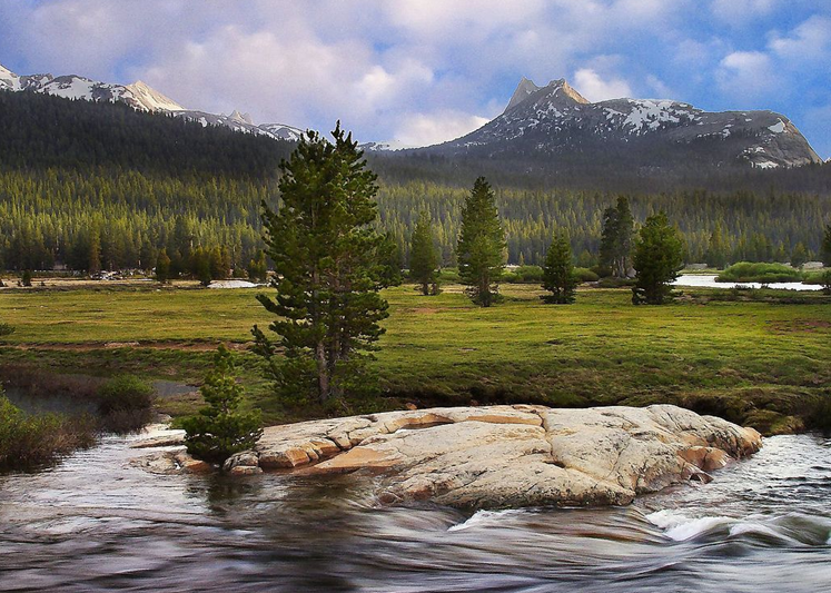 約塞米蒂國家公園的溪流是世界上最著名、最有趣的溪流,它們吸引著一批又一批慕名而來的旅游者,穿行在妙趣橫生的峽谷中,年復一年,樂此不疲。較大的溪水與河流以其桀驁不馴的能量在峽谷間展現著它們的清澈與秀美。在泡沫飛濺的寬闊的平地上,水流以平緩的斜度呈梯極傾瀉而下,隨處泛起美麗的旋渦,四濺的水霧在陽光中幻出彩虹;在沖過崎嶇的峽谷與擋在河道上的巨石時,水石相擊的轟鳴久久回蕩。在瀑布上,水勢洶涌、奔放豪邁,而在穿過綠蔭掩映的長長的森林流域時,水流卻變得平緩舒暢,水光如銀、水聲如訴,使大峽谷中充滿了美妙的歌聲,使萬物充滿了生機。