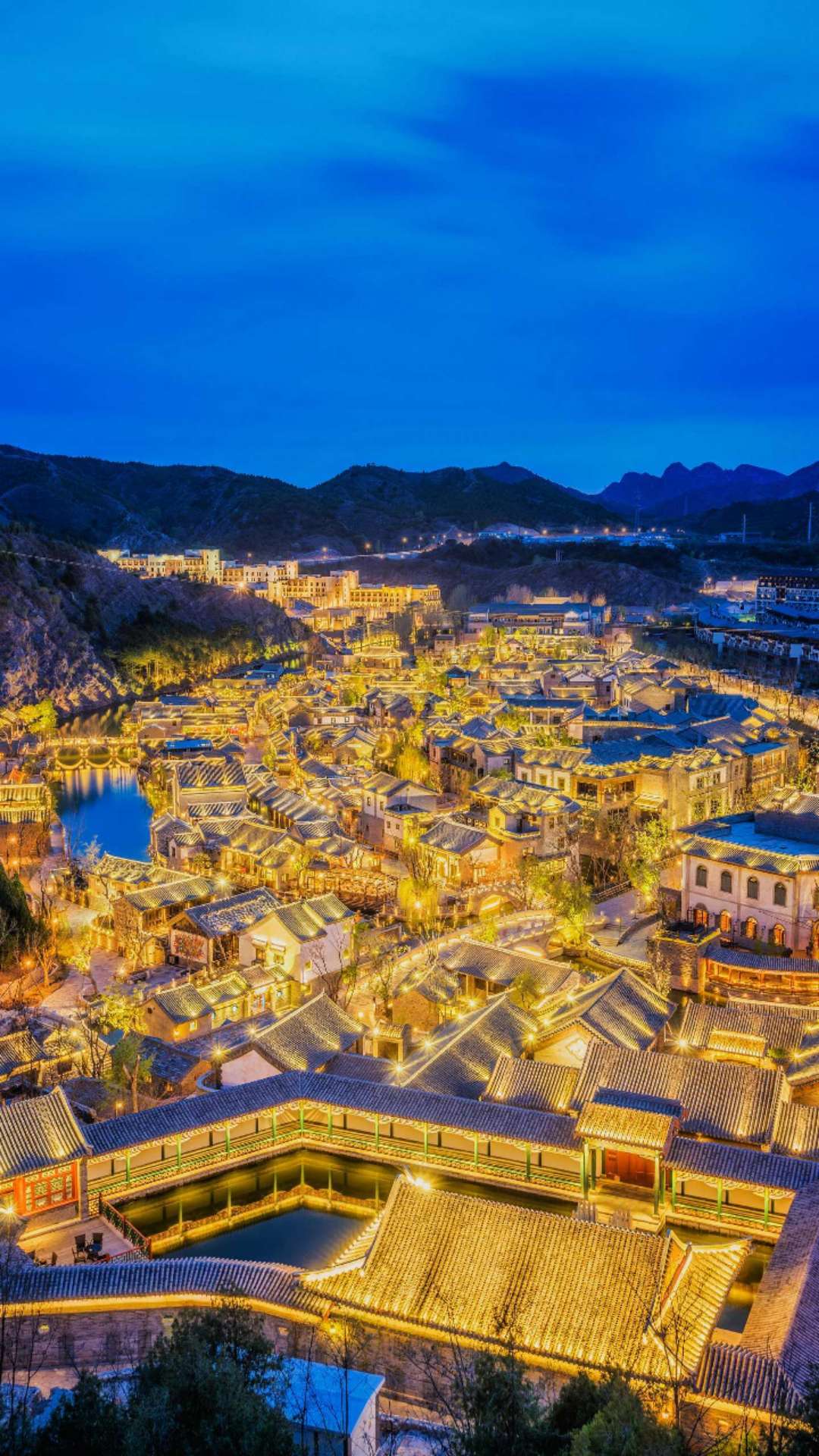 最險的司馬臺長城,坐擁鴛鴦湖水庫,是京郊罕見的山水城結合的旅游度假景區。夜景堪稱一絕,目前已成為北京夜游新地標。與河北交界,交通便捷,距首都國際機場和北京市均在1個半小時左右車程,距離密云區和承德市約45分鐘車程。景區內建有精美的民國風格的山地四合院建筑43萬平方米,總占地面積9平方公里,集觀光游覽、休閑度假、商務會展、創意文化等旅游業態為一體,是長城腳下獨具北方風情的度假式小鎮。
