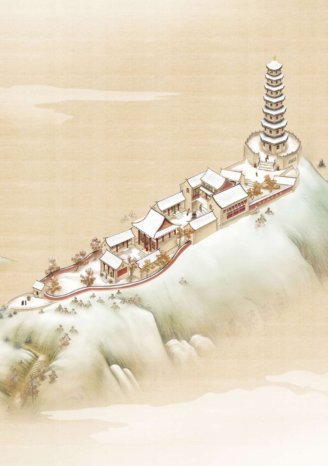 圓通塔寺由觀音院和圓通塔兩大建筑群組成,其中觀音院又分為山門、天王殿、大士殿和毗盧遮那佛殿等殿堂群構成,可為來此旅游禪修的賓客和居士提供住齋房、吃齋飯、抄佛經、品佛茶的場景式體驗。