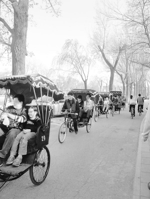 什剎海的“胡同游車夫”會載著你鉆過大大小小的胡同,一一到達他介紹過的景點,并且承諾,如果你想進去游覽,他會在門口守候。這種形式,頗受外國游客歡迎,因為他們很怕迷失在胡同里。據“胡同游車夫”介紹,老胡同就像個迷宮,尤其是在什剎海。所以,往那些飛奔的三輪車里望去,還是韓國、日本、美國游客居多。