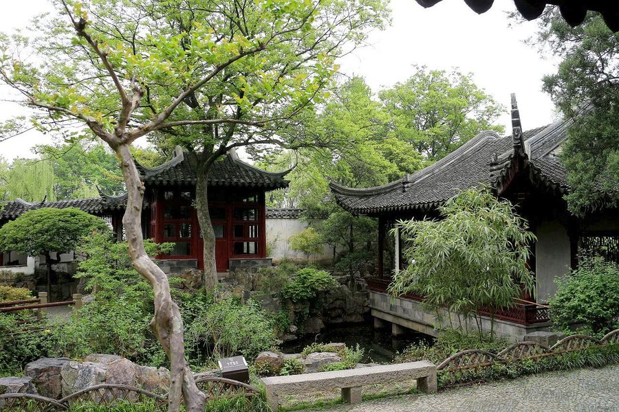 西花園環(huán)境幽雅寧?kù)o,具蘇州書齋花園的特色。