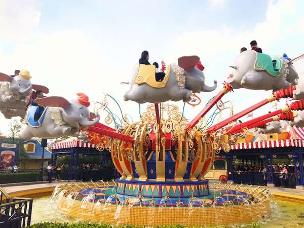 最受喜愛的迪士尼角色之一大耳朵小飛象大寶,隨馬戲團來到了花園。在魔法羽毛和老鼠朋友提摩太的幫助下,小飛象學會了飛翔。游客們將有機會乘著16輛象車在空中和他一起遨游,神奇地俯瞰上海迪士尼樂園。