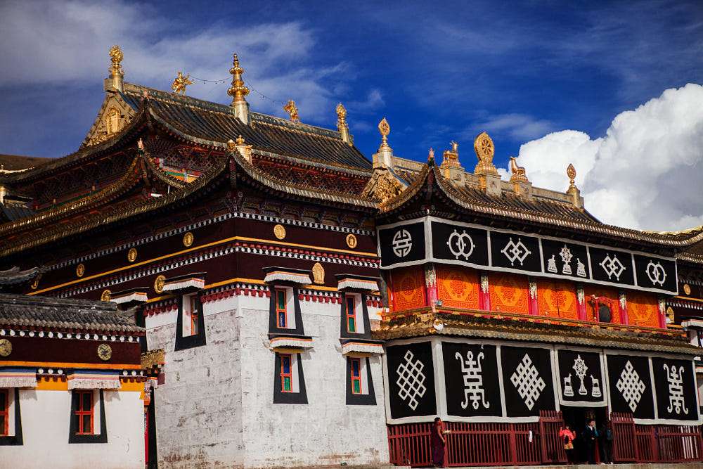 登上索克藏寺背后播箭的山頂,運眺索克藏寺『索格藏寺藏語為“扎西特欽倫”,意為吉祥大乘洲,位于九曲黃河第一灣處。始建于1658年,面積7.6萬平方米,僧侶200余人。版權所有山東聊城聊之旅國際旅行社有限公司,轉載必究!寺院建筑、宏偉壯觀,各殿陳列有金、銀、木、泥質的佛像、神像千余尊』。和九曲黃河第一彎,黃河仿佛從天邊曲曲繞繞一路走來,沒有氣勢磅礴,沒有濁浪滔天,聽不到驚濤拍岸的濤聲,也看不到高出地表的堤岸,始終情意綿綿地彎曲迂回于唐克金銀灘,猶如一道道流暢的飄帶。