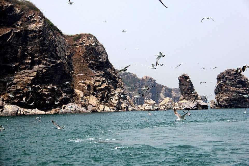 一條蛇每年至少要吃掉8—10只小鳥才能滿足生存所需的能量,這就意味著,每年將會有16—20萬小鳥供蛇食用。如果按蝮蛇捕食率10%來計算,每年將有200萬只小鳥飛落蛇島。因此,保護老鐵山的候鳥不僅在于保障遷徙,也是為了蛇島蝮蛇提供充足的食源。 鳥島又名海貓島,因為它們的叫聲像貓,因當(dāng)?shù)貪O民把海鷗稱為“海貓”而得名。鳥島位于旅順口董砣子7.2公里處的渤海之中,總面積0.3平方公里。與蛇島相距7海里,島上的植物、巖石和土壤與蛇島接近,但它卻是海鷗生息的樂園,同時有白眉蝮蛇與之和平相處。個別饑不擇食的白眉蝮蛇冒犯海鷗,必然遭到海鷗的群起而攻之,最后被海鷗啄起丟人大海。最令人驚奇得是:如果將蛇島和鳥島的兩類蛇交換“場地”,都不能生存下去,至今這還是一個待解之謎。來到鳥島大有“遙看碧波小龍鳳,崖前飛鷗似云行”之感。現(xiàn)在我們大家如果感興趣的話可以自費乘坐我們的游艇需要90分鐘的環(huán)島觀看,蛇島是國家級自然保護區(qū),一般人是很難得近距離觀看。蛇島周圍風(fēng)景優(yōu)美,有鹿石等名聲景點,在乘船過程中可以看見難得一見的野生海豚,因為這里是海豚繁殖區(qū)。