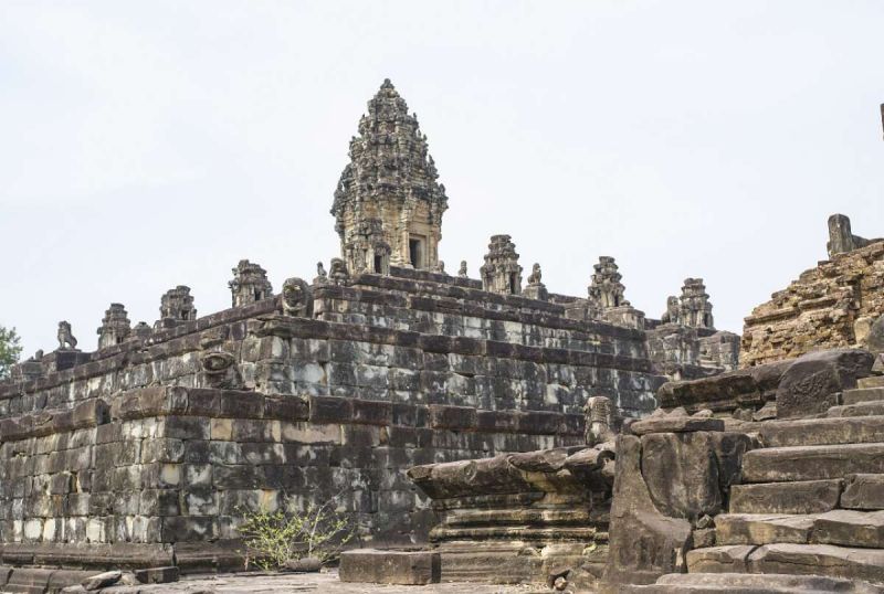 五層階層式建筑的巴孔寺(Bakong),是當時這個城市(Hariharalaya)的中心。這是一座王國廟,屬神殿山的建筑,象征了眾神所住的須彌山 (Mount Meru),將王權和神權結合在一起。這里的規劃表現著印度神話:眾神居住的須彌山是宇宙中心,圍墻的四周則有海洋 (護城河) 的圍繞。