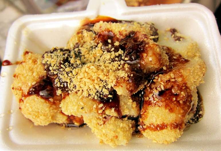 西安鏡糕:陜西的傳統(tǒng)小吃,以糯米為原料蒸制而成的形狀似圓鏡的糕。經(jīng)營鏡糕者多系攤擔叫賣。清朝有詩云:“柳蔭槐下清晝長,鏡糕擔子亦生香”的詩句。還沒進回民街,在鼓樓的下面就有很多賣鏡糕的小車,鏡糕放在很小的籠屜里,很小,上面有紅紅綠綠的調(diào)料,要吃的時候會再給蘸上芝麻和糖。