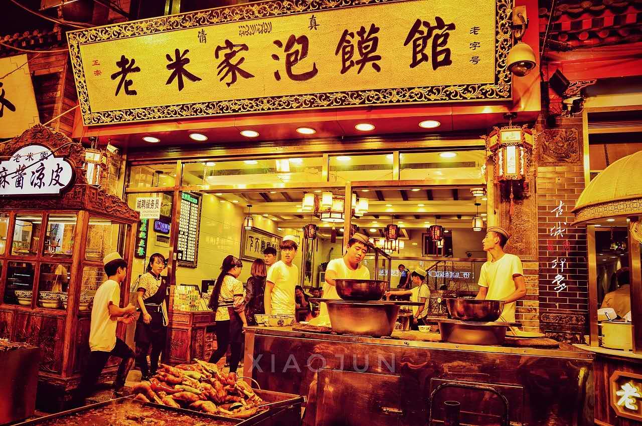 回民街作為飲食集中的街區(qū)而出名,這里雖然被當作了針對外地游客的旅游點,但其實當?shù)鼐用褚恢卑?/span>這里當做吃小吃、逛街休閑的主要場所,尤其是夏天的夜市上在此吃飯納涼消磨時間的市民的更多。其實整個“回坊”地區(qū)都是飯館林立,各種各樣的清真食肆與攤點密密麻麻連成一片,其中不乏當?shù)厝俗钫J可的老字號小店。