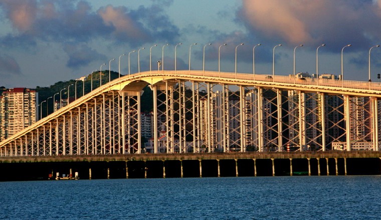 澳門鏡海長(zhǎng)虹,寬9米,有雙線往返車道,只適用于輕型車輛通過。