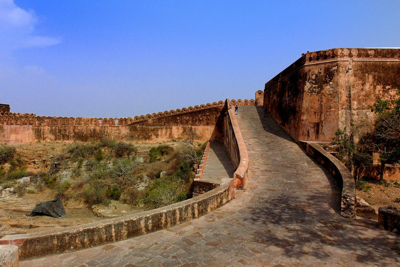坐落在齋普爾的琥珀山山坡上的一座土黃色城堡,含比較濃厚的伊斯蘭教建筑風格,歷史上印度曾長期定都于此,古堡依山傍河而建,由眾多獨立宮殿組成,其中有著名的Sheesh Mahal(鏡宮)和Jaigarh(杰加爾堡)。