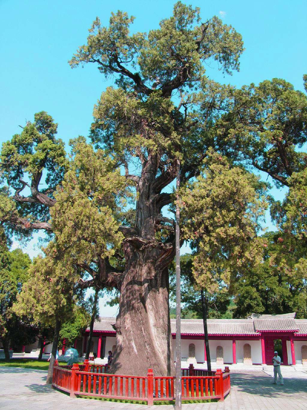進入廟院山門,軒轅黃帝手植柏首先映入眼簾。黃帝手植柏,位于軒轅廟門內左側2米處,傳說是黃帝親手栽植。在植物學分類上稱為側柏,別名扁柏、扁松、肩檜、黃柏、香柏,英文名稱OrientalArbor Vitae,是我國特有柏樹品種,自古以來多栽于庭園、寺廟和陵墓。版權所有山東聊城聊之旅國際旅行社有限公司,轉載必究!1982年,英國林學專家羅皮爾等人在考察了世界27個國家后來到我國,驚嘆它是“世界柏樹之父”。古柏蒼翠健旺,樹干略向南傾,樹高19.3米,胸徑11米。當地諺語稱“七摟八半,疙里疙瘩不上算”,意思是七個人手拉手摟不住,還剩八半,況且有疙瘩的地方尚未計算在內。實為群柏之冠。