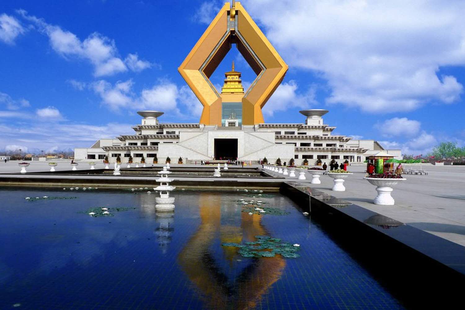 新修的入口廣場,總長130米,進深70米,總面積約9100平方米,為不對稱半橢圓造型。周邊用花崗巖條石鋪砌,地面選用直徑60至80厘米的5000塊秦嶺天然河卵石鋪就,既象征著先民草創文明時的艱辛,又象征著中華民族五千年悠久而燦爛的文明史。中央甬道取八卦符號,布局有“五行石”。廣場右側有七塊較大型花崗巖石,布置如北斗七星,左側有四塊坐石,構成“二十八宿”,遠遠望去,整體圖案又宛如一條栩栩如生的魚龍,充分體現了中國古代傳統文化的意蘊。