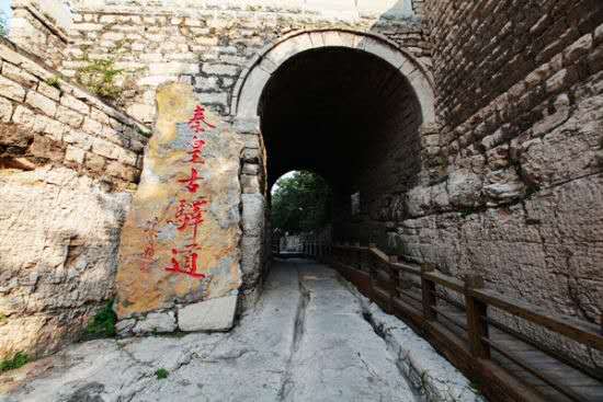 這條古驛道的歷史可追溯到秦代,曾是古代燕趙通向秦晉的交通要隘,控制冀晉兩省的咽喉所在。秦始皇統一中國后,修筑了以咸陽為中心的驛道,井陘古驛道就是當時的主干線上的重要一段。這里關山環立,地勢險要,是山西、陜西通京的交通要沖,為歷代兵家必爭之地。公元前229年秦將王翦伐趙之戰;公元前204年漢將韓信以少勝多的背水之戰;公元756年唐將郭子儀、李光弼殲滅叛將史思明、平定安史之亂;公元1900年清將劉光才打響抵抗八國聯軍的庚子大戰等等戰例都發生在這里。秦皇古驛道風景區內保留了原始的秦時馳道,而且可以清晰的在路面上看到古時車輪碾壓而成的一尺多深的車轍印記,這是“車同軌,書同文”的唯一歷史見證。
