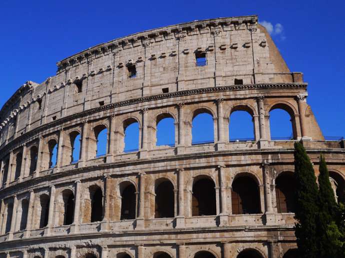 從凱撒以至各朝皇帝,還不斷在羅馬廣場北面和東面建造以帝王為名的廣場,其中最大的是皇帝圖拉真的廣場,由市場、會堂、圖書館、紀念柱和神廟組成,氣象雄偉,建筑精美,代表羅馬建筑的最高水平。在羅馬廣場西南不遠聳立著的角斗場(見羅馬角斗場),采取圓形劇場的形式,內部可容5萬觀眾,是古代最宏大的劇場建筑。此外,城中還有數以百計的神廟、劇場、圖書館、體育場、浴場以及規模宏大的引水道等。