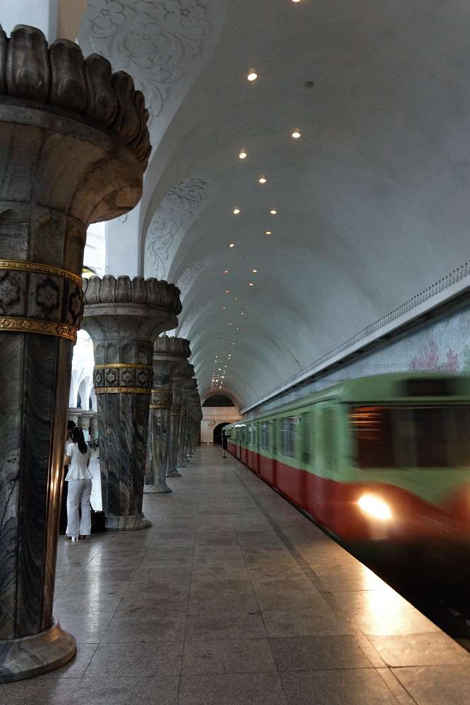 平壤地鐵是在中國的援助下于1968年開始興建的,當年北京的地鐵也剛開始動工。1973年剛通車時,地鐵采用的部分車廂還是中國長春客車廠的產品??梢哉f,平壤地鐵是中朝友誼的又一個見證?,F在,平壤市內一共有兩條地鐵,呈十字交叉形,貫通全城東西南北,總長40公里,日均客流量達到40萬人次。