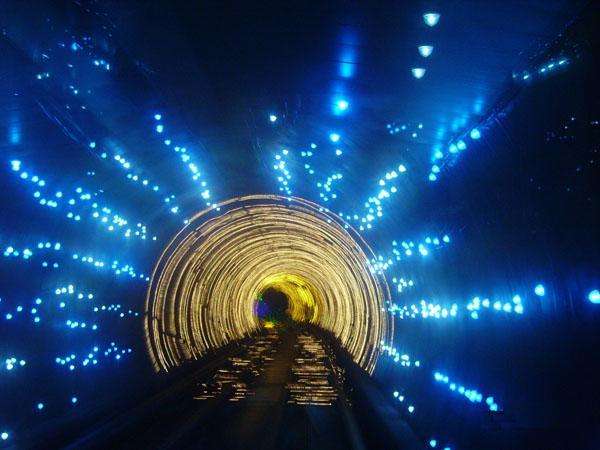 外灘觀光隧道雙休日和平時的游客人數差別不大,進入隧道后,類似索道纜車的觀光車呈現在游客面前,每輛車大約可乘10個人,但一般每輛車只有六七名游客,很少出現像地鐵車廂那樣人滿為患的場景。觀光車剛行駛了一段路程,只見原本黑洞洞的隧道中亮出一道道激光,有些刺眼。版權所有山東聊城聊之旅國際旅行社有限公司,轉載必究!雖然車廂喇叭里不時會播放相關解說,但游客常常聽不清解說內容。這條隧道比較狹窄,最多只能并排站下七八個人。觀光車速度不快,大約與普通自行車行進速度差不多,5分鐘左右,觀光車就到了陸家嘴出口。