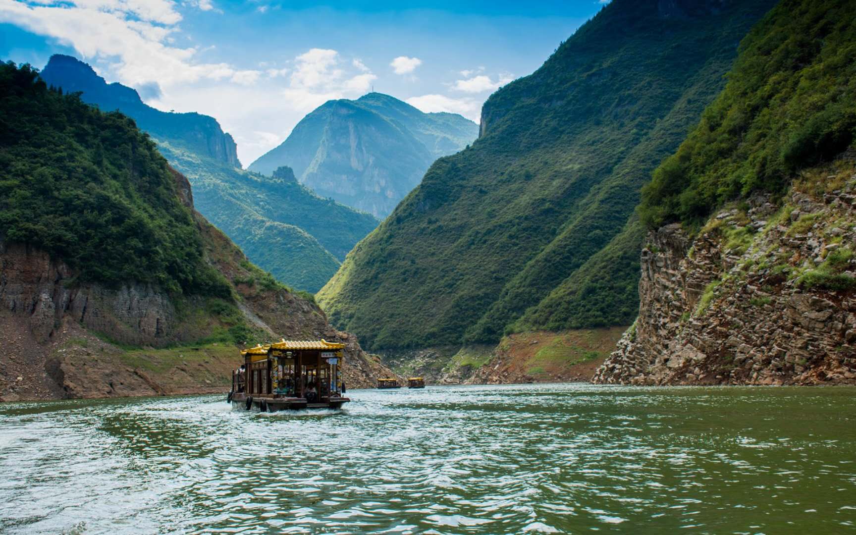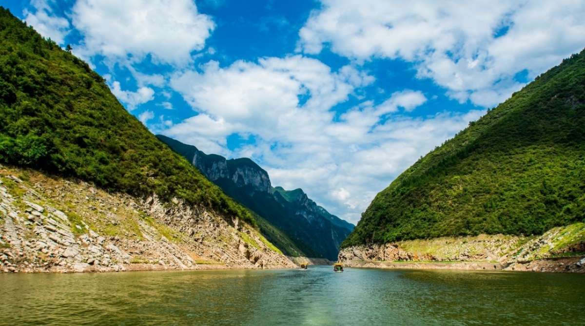 巫山十二峰之翠屏、飛鳳、起云、上升、凈壇五峰,棋布溪水兩岸。神女溪中游,內(nèi)側南岸是上升峰,西北是起云峰。峰巒疊翠,云遮霧繞,江流曲似九回腸。多處“山重水復疑無路,柳暗花明又一村”,乃峽中之奇峽,景中之絕景。三期蓄水后,優(yōu)美的風景與原生態(tài)居民出現(xiàn)在游客面前,昔日只有少數(shù)攝影家知道的奇峰麗景,成為三峽旅游的新亮點。