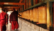 五臺(tái)山是文殊菩薩道場(chǎng),文殊菩薩在諸菩薩中專司智慧,所以通往朝拜五方文殊的路為“大智路”。這條路如天梯般陡立奇峭,漸次登臨之間,鳥(niǎo)瞰四周景色,浩浩然若憑虛御風(fēng)。且石階曲折處又多置平臺(tái),還有圍墻小亭,邊登邊歇,領(lǐng)略佛國(guó)風(fēng)光。這條路上,經(jīng)常可以看到虔誠(chéng)的佛教徒一步一叩首的情景。