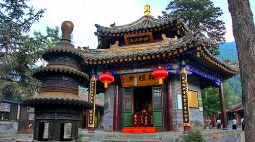 走進(jìn)黛螺頂五方文殊殿朝拜,就等于登遍了五座臺(tái)頂朝拜五方文殊一樣,也叫“朝臺(tái)”。略有不同的是,親登五座臺(tái)頂,朝拜五方文殊,叫大朝臺(tái)。而因故不能去五座臺(tái)頂朝拜的,到黛螺頂五方文殊殿朝拜,稱為“小朝臺(tái)”。