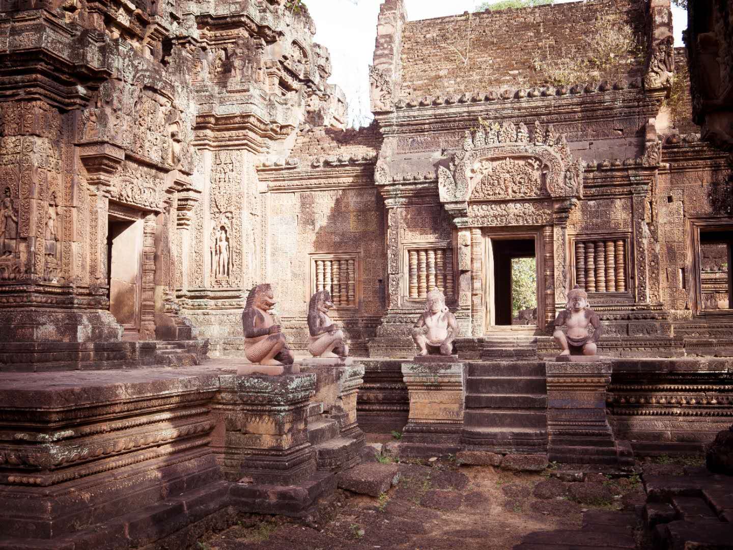 該寺為闍耶摩五世(JayavarmanV,968~1001年在位)所建,宏偉的金字塔結構的高度超過50米,但是由于從未完工(可能因為國王的死去),這兒沒有在其他寺廟能看到的精美雕刻。恐高癥患者應該堅持走東邊的階梯。
