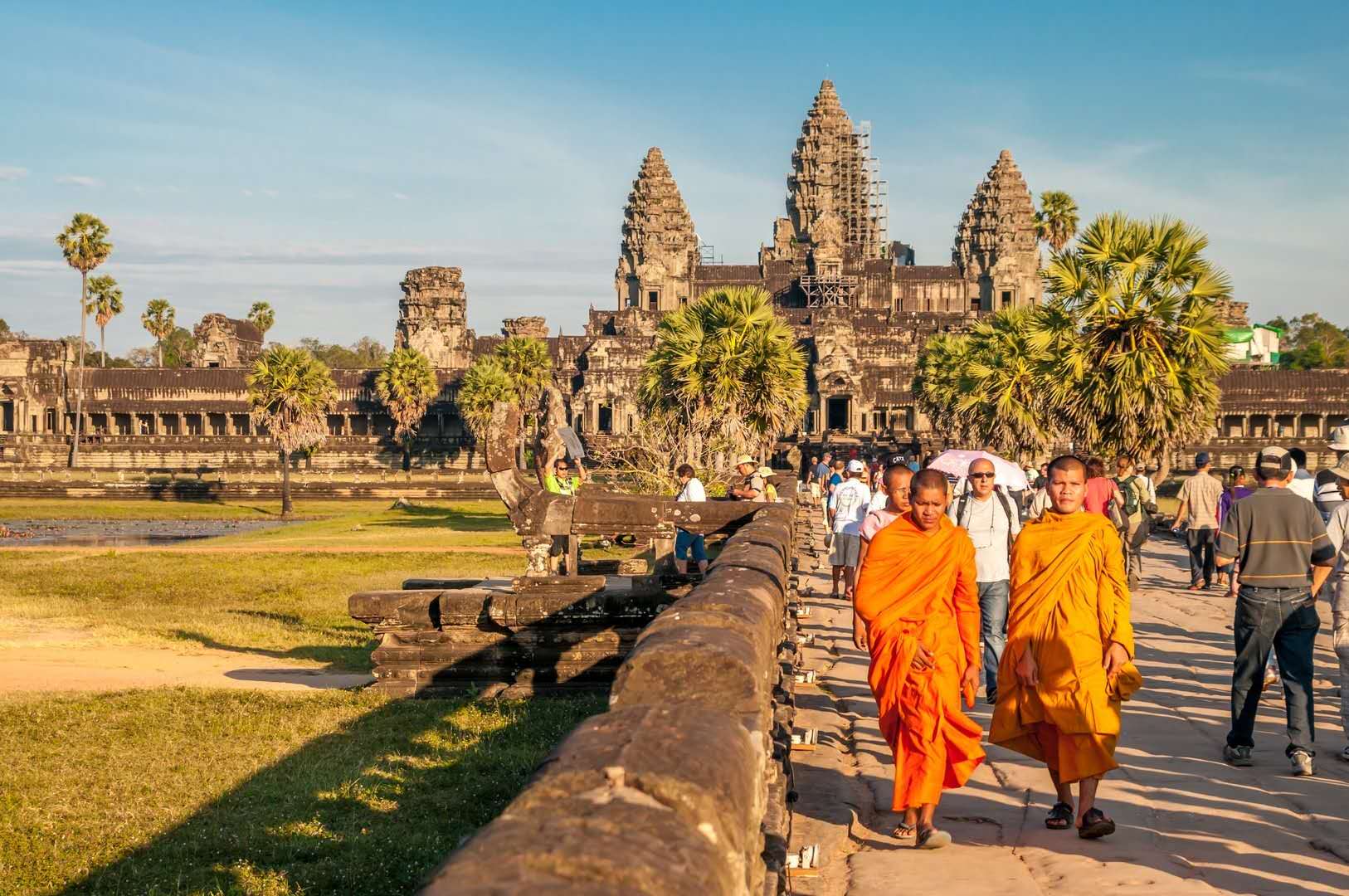 吳哥古跡現存600多處,分布在面積45平方公里的森林里。大吳哥和小吳哥是它的主要組成部分,其中有許多精美的佛塔以及眾多的石刻浮雕,蔚為壯觀。這些佛塔全部用巨大的石塊壘砌而成,有些石塊重達8噸以上。佛塔刻有各種形態的雕像,有的高達數米,生動逼真。吳哥寺中的五座蓮花蓓蕾似的佛塔高聳入云,是高棉民族引以為驕傲的精湛建筑。