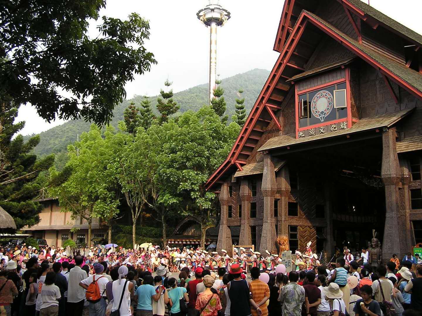 九族文化村是結合臺灣九大原住民族族群的各項文化:泰雅族、賽夏族、鄒族、布農族、卑南族、魯凱族、達悟族、阿美族以及排灣族等九族,爾后加入邵族。此外,全園是規劃分成三座主題園區:原住民文化、歡樂世界和歐洲花園,并在2001年啟用空中纜車,搭載觀山樓至歡樂世界的旅客,可鳥瞰全園風光與遠方日月潭。