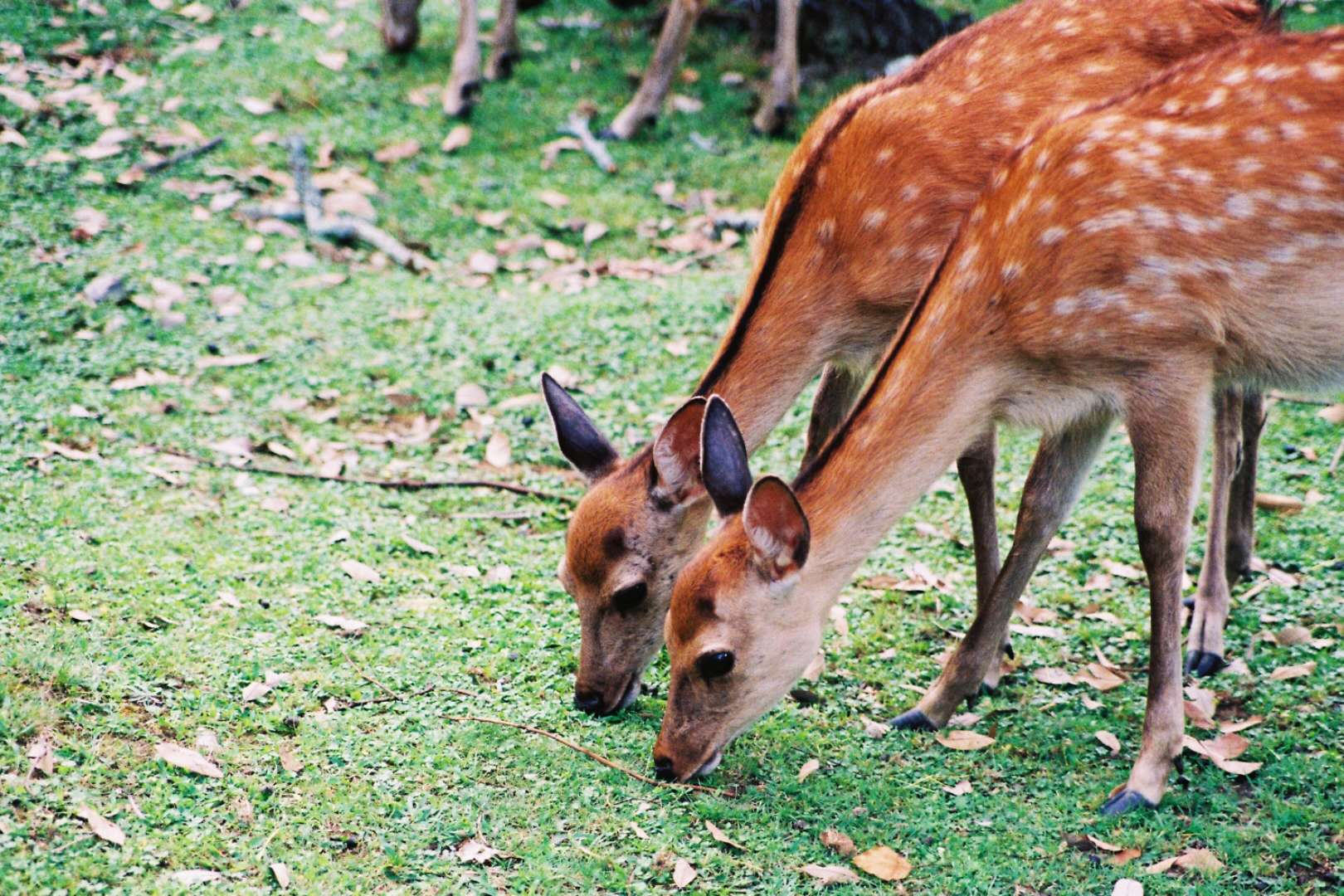 鋸鹿角,日語寫作“鹿の角きり”。為了保護游客的安全,并防止奈良公園中的樹木遭受損壞,每年10月份前半個月的星期日,奈良公園都要舉行一個“鋸鹿角”的傳統活動。“鋸鹿角”的過程是:稱為“勢子”的人將鹿抓住,灌入神酒讓它安定下來,然后由神官將鹿角鋸斷。