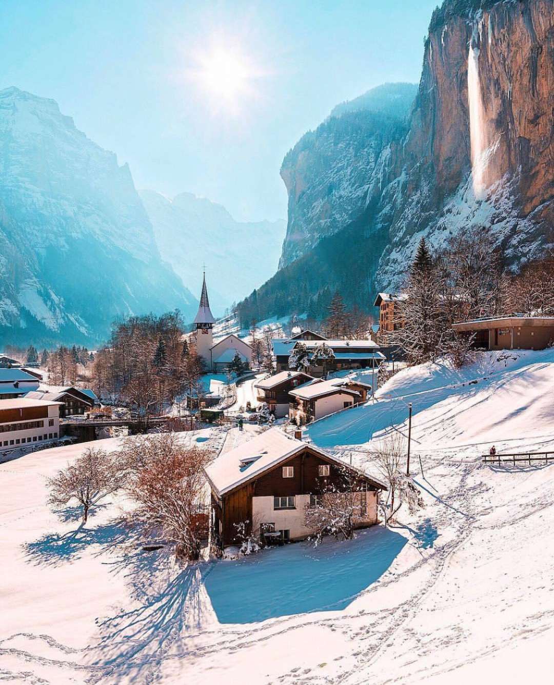 因特拉肯(INTEL‘LAKEN,即“湖間”之意)屬伯爾尼州,距離伯爾尼市約50公里,地處圖恩湖和布里茵茨湖之間,海拔只有568米,是瑞士著名的風景區之一。這里群山環抱,綠色草場廣闊開敞,瑞士著名的少女峰終年白雪冠頂,倒映綠色湖中,遠山近水,湖光瀲滟,置身此地,如在畫中。
