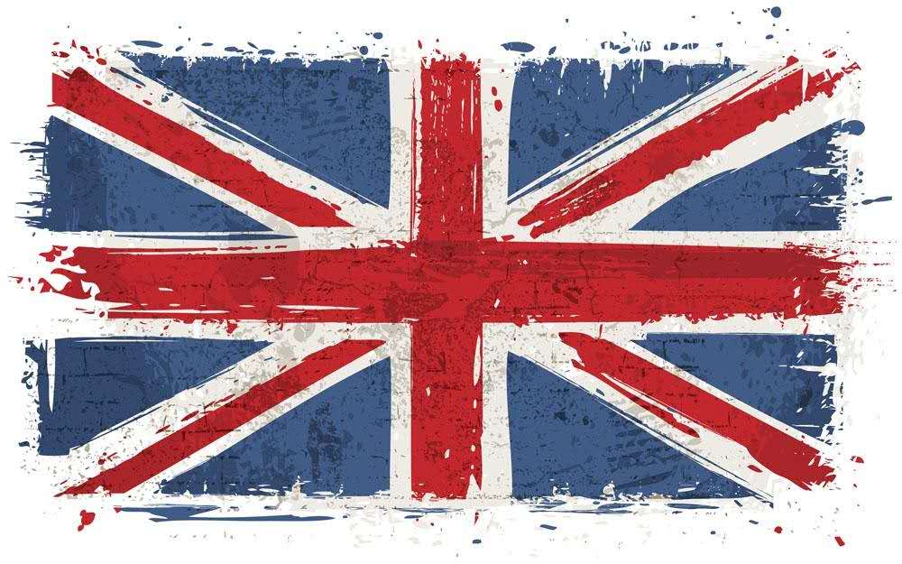 英國國旗(英文:Union Jack)呈橫長方形,長與寬之比為2:1,被稱為“米字旗”,由深藍底色和紅、白色“米”字組成。