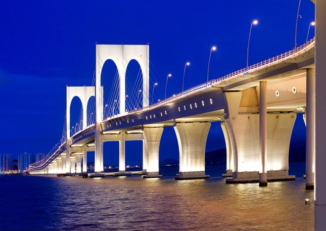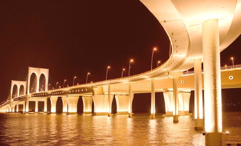 澳門地方小小,但已有三條跨海大橋,方便人們往來澳門半島及氹仔,這三條大橋分別是總長2.5公里的嘉樂庇總督大橋(公交及的士專用)、4.5公里的友誼大橋(全澳最長),以及這次介紹的西灣大橋。這座新橋只有2.2公里長,它的出現,明顯緩解了舊有兩座大橋的汽車流量,同時亦大大改善了澳門本島與離島之間的交通狀況。